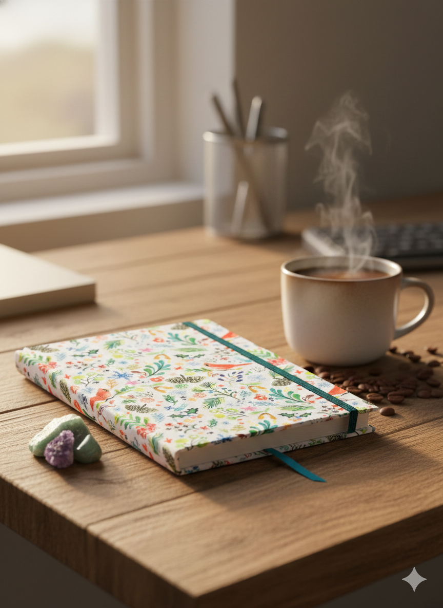 Libreta clásica Mediana Hojas negras / Flores café y negro.